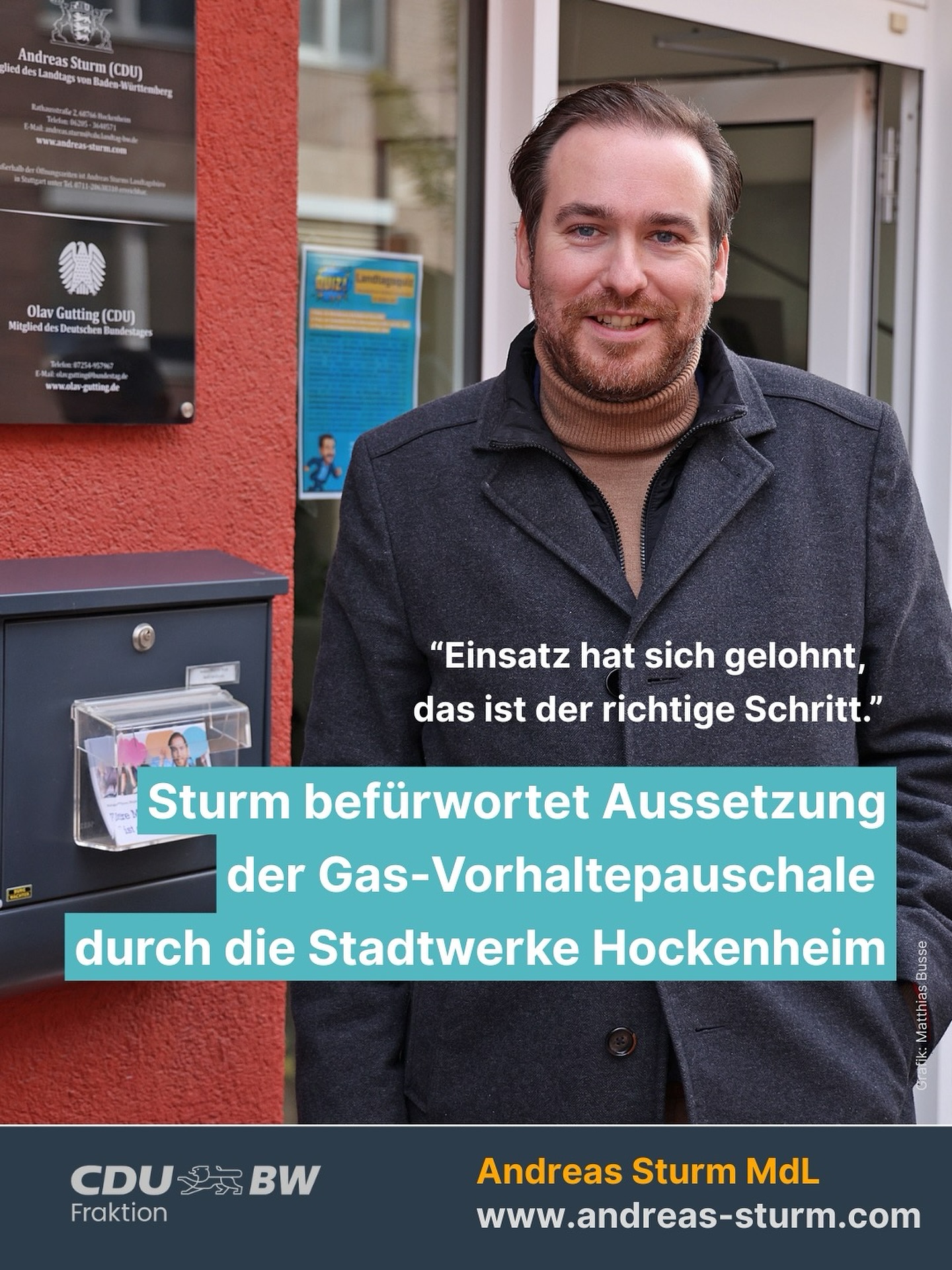 ❗️Sturm befürwortet Aussetzung der Gas-Vorhaltepauschale durch die Stadtwerke #Hockenheim 🙏 Ich danke der Stadt Hockenheim und den Stadtwerken Hockenheim dafür, dass sie die Vorhaltepauschale für stillgelegte Gasanschlüsse in Höhe von über 91 Euro aufgrund der bestehenden Rechtsunsicherheit vorerst aussetzen. 🔎 Aktuell wird geprüft, ob Eigentümer von stillgelegten Gasanschlüssen oder solchen, die nie in Betrieb genommen wurden, tatsächlich eine jährliche Gebühr entrichten müssen. Aus meiner Sicht braucht es hier dringend eine bundesweite Regelung, um für alle Beteiligten Klarheit zu schaffen. 🤝 Nach meinen Bürgersprechstunden im Juli und August habe ich mich intensiv mit diesem wichtigen Thema auseinandergesetzt, das viele Bürgerinnen und Bürger betrifft. In Gesprächen mit verschiedenen Energielieferanten und Netzbetreibern habe ich die Problematik erörtert. Gemeinsam mit meinem Bundestagskollegen @olavgutting habe ich zudem die Landes- und Bundesregierung in einem Schreiben auf die Dringlichkeit des Themas hingewiesen. 👉🏻 Klar ist: Energie- und Netzbetreiber benötigen Rechtssicherheit und eine wirtschaftliche Perspektive, um den Ausfall von Gaskunden bewältigen zu können. Es darf jedoch nicht sein, dass der politisch gewollte Umstieg auf Wärmepumpen vollständig zulasten der Verbraucher und #Energieversorger geht. 🙏 Mein besonderer Dank gilt den Stadtwerken Hockenheim, die mit ihrem Vorgehen ein wichtiges Zeichen setzen. Gleichzeitig erwarte ich, dass weitere Netzbetreiber und Energielieferanten diesem Beispiel folgen, bis eine belastbare Lösung gefunden ist. 👉🏻 Ich freue mich sehr, dass sich unsere Initiative gelohnt hat und denke, dass wir auf dem Weg sind, eine faire Lösung für alle Beteiligten zu. Bild und Layout: @matthias.busse Hockenheim - unsere Stadt #energieversorgung #energiepolitik #andreassturmmdl #cdu