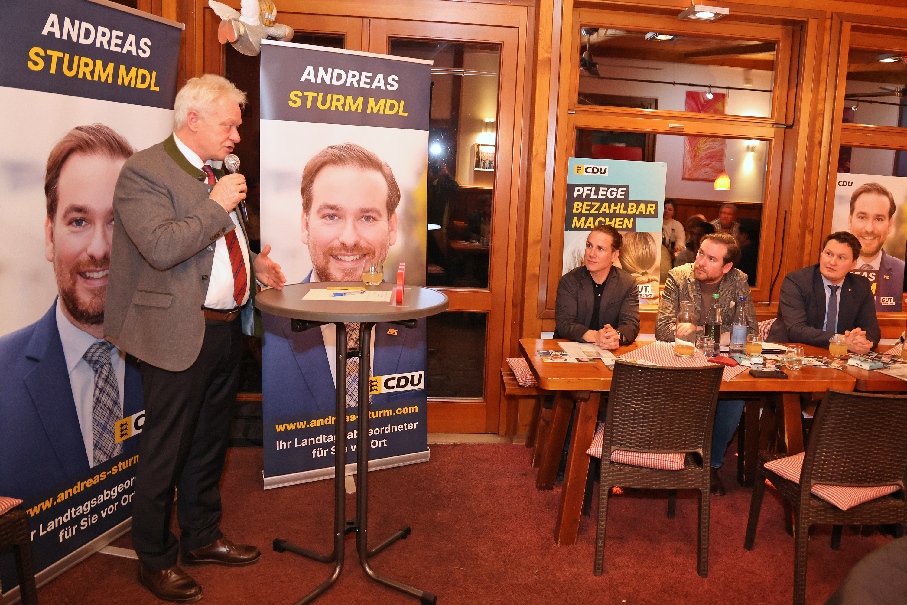 Im Laufe des Abends stieß auch Harald Schlumpp vom Johanneshof noch zur Runde. Zuvor hatte er dem SWR ein Interview gegeben und ließ es sich anschließend nicht nehmen, ebenfalls an der Diskussion teilzunehmen. (CDU Hockenheim)