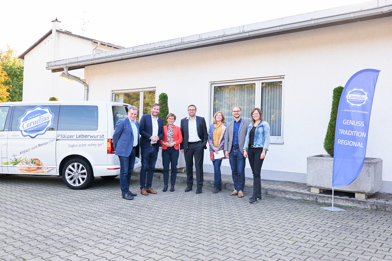 Auf Sturms Einladung besuchte die baden-württembergische Staatssekretärin Sabine Kurtz MdL (Ministerium für Ernährung, Ländlichen Raum und Verbraucherschutz) die Cornelius GmbH in Hockenheim und sprach mit Peter Cornelius, der seit 2001 in dritter Generation die Geschicke des Familienunternehmen leitet, über die aktuellen vielfältigen Herausforderungen, vor welchen das Traditionsunternehmen, welches deutschlandweit zu den führenden Herstellern von Pfälzer Wurstspezialitäten zählt, steht.